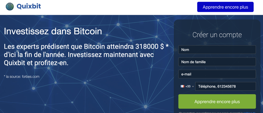 Dans le tableau suivant, nous avons résumé les principaux points à retenir sur la plateforme.  Les plateformes de trading de crypto-monnaies jouent un rôle central dans le trading moderne, en combinant à la fois accessibilité et possibilités de rendements attractifs. Quixbit se positionne comme une alternative prometteuse, grâce à des fonctionnalités avancées conçues pour améliorer l’expérience de trading. Les fondateurs de Quixbit ont développé la plateforme avec pour ambition d’offrir des services de trading performants, adaptés aussi bien aux débutants qu’aux traders chevronnés, quel que soit leur capital de départ. Le point central de l’offre Quixbit repose sur un robot de trading performant, capable d’analyser les marchés volatils des crypto-monnaies avec une grande précision. Grâce à l’intelligence artificielle, ce système est capable de traiter d’importants volumes de données en temps réel, d’identifier les opportunités de trading rentables et de les exécuter de manière optimale. Quixbit se distingue par son approche accessible, s’adressant aussi bien aux novices qu’aux traders expérimentés via une interface intuitive et des performances solides. La plateforme cherche à démocratiser l’accès au trading de crypto-monnaies en proposant des outils adaptés à une gestion efficace des investissements. La sécurité est une priorité majeure pour Quixbit, qui met en œuvre des technologies de cryptage avancées et des mesures de protection rigoureuses pour garantir la sécurité des actifs et des données personnelles des utilisateurs. Cet engagement vise à offrir un environnement de trading fiable et sécurisé, à l’abri des menaces potentielles. Par ailleurs, Quixbit mise sur la praticité en proposant une assistance clientèle disponible 24h/24 et 7j/7. Forte de son expérience, la plateforme envisage un avenir où l’innovation technologique continuera de permettre aux traders de tirer parti des dynamiques du marché des crypto-monnaies. Pour démarrer avec Quixbit, rendez-vous simplement sur leur site officiel. Dès la page d’accueil, un formulaire d’inscription bien visible vous attend. Il est conçu pour être simple et rapide à compléter, ne nécessitant que quelques informations de base : votre prénom, nom, une adresse e-mail valide et un numéro de téléphone. Une fois ces détails envoyés, vous serez contacté par un conseiller dédié qui vous assistera dans l’élaboration de votre stratégie de trading personnalisée. Ce conseiller vous guide tout au long de vos premiers pas sur la plateforme et peut également vous fournir des ressources éducatives, telles que des formations ou documents spécifiques, pour approfondir vos compétences en trading. Contrairement à d’autres plateformes, Quixbit précise qu’un dépôt initial de 250 euros est requis pour activer votre compte et débloquer l’accès à l’ensemble de ses fonctionnalités. Ce montant vous permet de découvrir les outils mis à disposition et de commencer à réaliser vos premières opérations sur la plateforme. Quixbit se positionne comme une solution innovante pour optimiser les décisions de trading en combinant mises à jour du marché et exécution automatisée de transactions via des robots de trading. Anton Kovačić, qui a publié un avis sur le site de la plateforme, décrit Quixbit comme un outil performant, capable de répondre aussi bien aux besoins des novices qu’à ceux des traders chevronnés. En s’appuyant sur une intelligence artificielle avancée, la plateforme offre des insights précis sur le marché des crypto-monnaies. Kovačić souligne que Quixbit est conçu pour booster les performances de trading en identifiant les meilleures opportunités du marché. Les algorithmes sophistiqués intégrés, capables de traiter d’immenses quantités de données issues des mouvements actuels du marché, permettent ainsi des décisions plus avisées. Sur le plan technique, bien que les spécificités du logiciel ne soient pas entièrement dévoilées, il est évident que l’efficacité du robot de trading repose sur des algorithmes poussés, pilotés par l’IA. Ceux-ci scrutent les tendances, puis exécutent les transactions en conséquence. L’équipe de Quixbit assure que leur IA a été affinée pour une précision optimale, intégrant des outils comme les ordres stop-loss pour une gestion des risques plus rigoureuse. Pour ceux qui souhaiteraient des détails plus pointus sur le fonctionnement du trading automatisé, il est recommandé de contacter directement le support client. L’interface de Quixbit se veut intuitive et accessible à tous. L’inscription et un dépôt initial sont nécessaires pour commencer à utiliser la plateforme. Une fois ces étapes franchies, les utilisateurs accèdent à leur tableau de bord et peuvent activer le robot de trading. À noter : le service client, disponible 24h/24 et 7j/7, devient accessible une fois l’inscription validée, garantissant un accompagnement continu tout au long de l’expérience de trading. La plateforme Quixbit a su se faire une place parmi les traders grâce à ses nombreuses fonctionnalités attractives. Voici les principaux éléments que nous avons relevés : Quixbit se distingue par une interface intuitive qui simplifie le trading, même pour les novices. Conçue pour offrir une navigation fluide, la plateforme permet aux utilisateurs, même sans expérience préalable, de se lancer facilement dans le trading. Le tableau de bord est structuré de manière claire, avec un accès direct aux outils de trading essentiels. Grâce à des guides explicatifs et une interface conviviale, les débutants peuvent rapidement se familiariser avec les fonctionnalités disponibles. La sécurité est une priorité pour Quixbit, qui met en place des mesures avancées pour protéger les actifs et les informations personnelles de ses utilisateurs. Bien que les dét