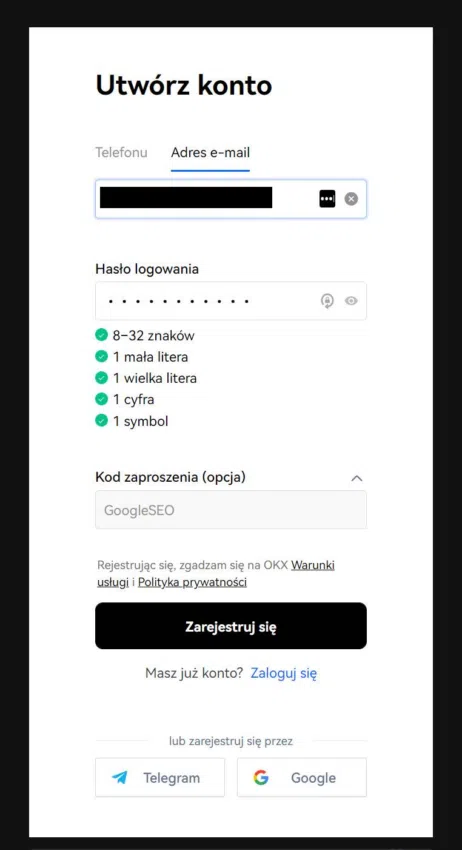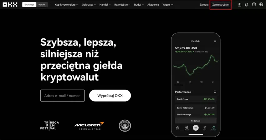 Odwiedź stronę OKX i „Zarejestruj się”.