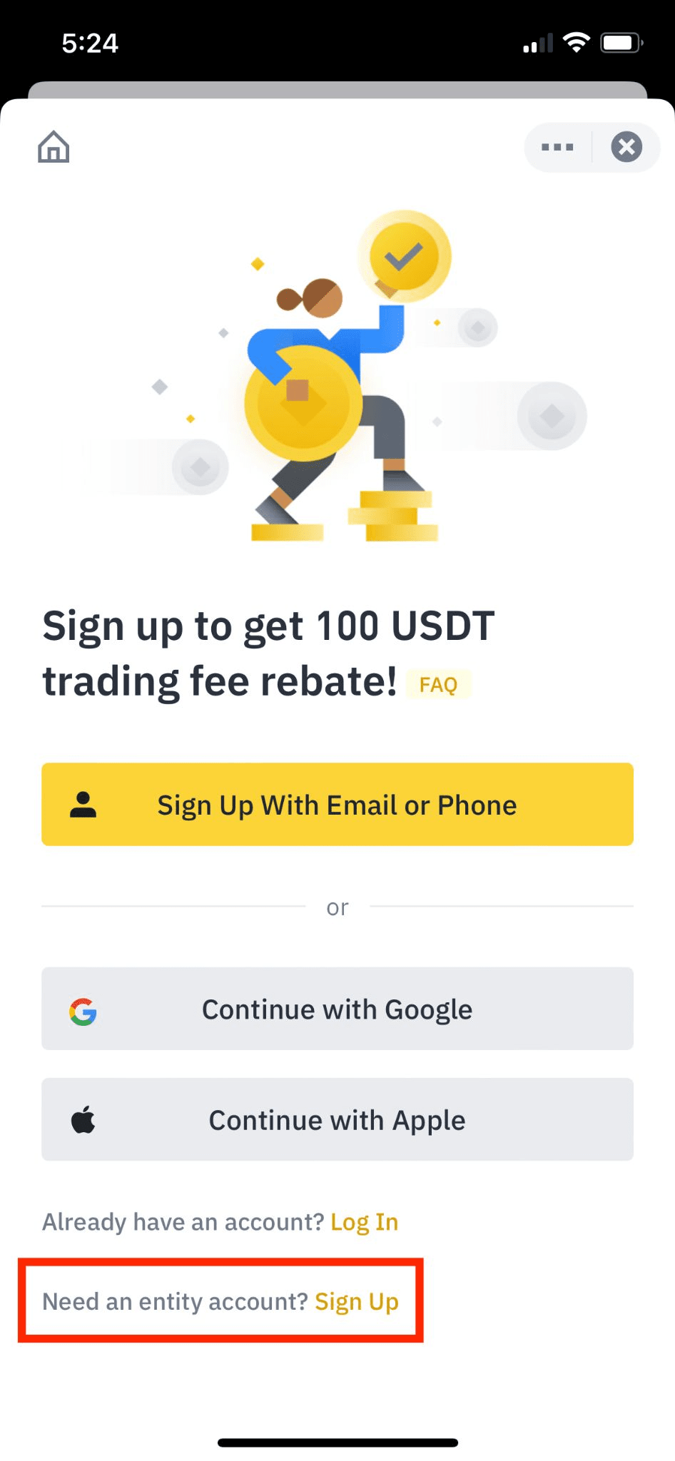 Öncelikle Binance avantajlarından, cüzdanınızdan ve platformdan yararlanmak için burada bir hesap açmanız gerekiyor. Kurumsal veya kişisel hesap açma seçeneğinden istediğinizi tercih edebilirsiniz. Biz bu rehberde, kişisel hesap seçeneğiyle devam edeceğiz. Bu platformda hesap açmak için e-posta adresi, telefon numarası, Apple veya Google hesabı seçeneklerinden istediğinizi seçerek adımlara devam edebilirsiniz. Kurumsal hesap açmak isteyenlerin ilgili butona tıklaması gerekiyor ancak burada dikkatli olmakta fayda var çünkü hesap türünü kişisel veya kurumsal olarak seçtikten sonra bunu değiştirmek mümkün değil.
