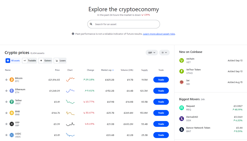 One of the largest crypto exchanges in the world was created in 2012 by Coinbase. This exchange works in the same way as a classical exchange, however, Coinbase present clients with various other crypto features and resources. Coinbase provides a crypto price explorer similar to CoinMarketCap, allowing users to view market data and track prices of over 8000 cryptocurrencies. The platform also has a web3 dApps discovery section, allowing users to explore more than 1900 web3 decentralized applications.